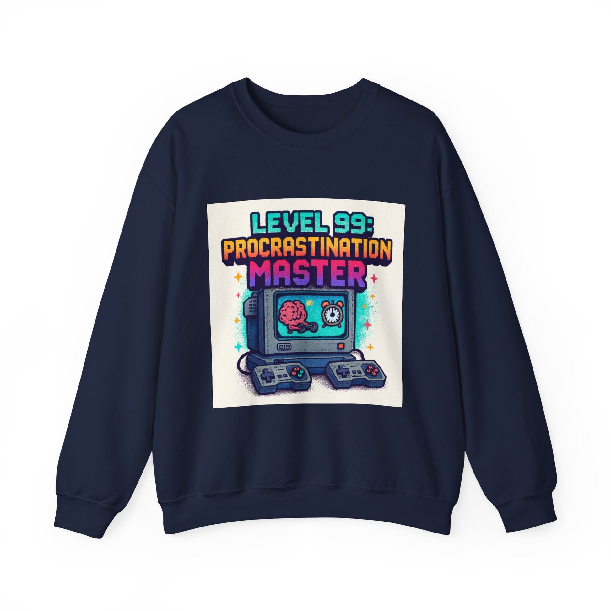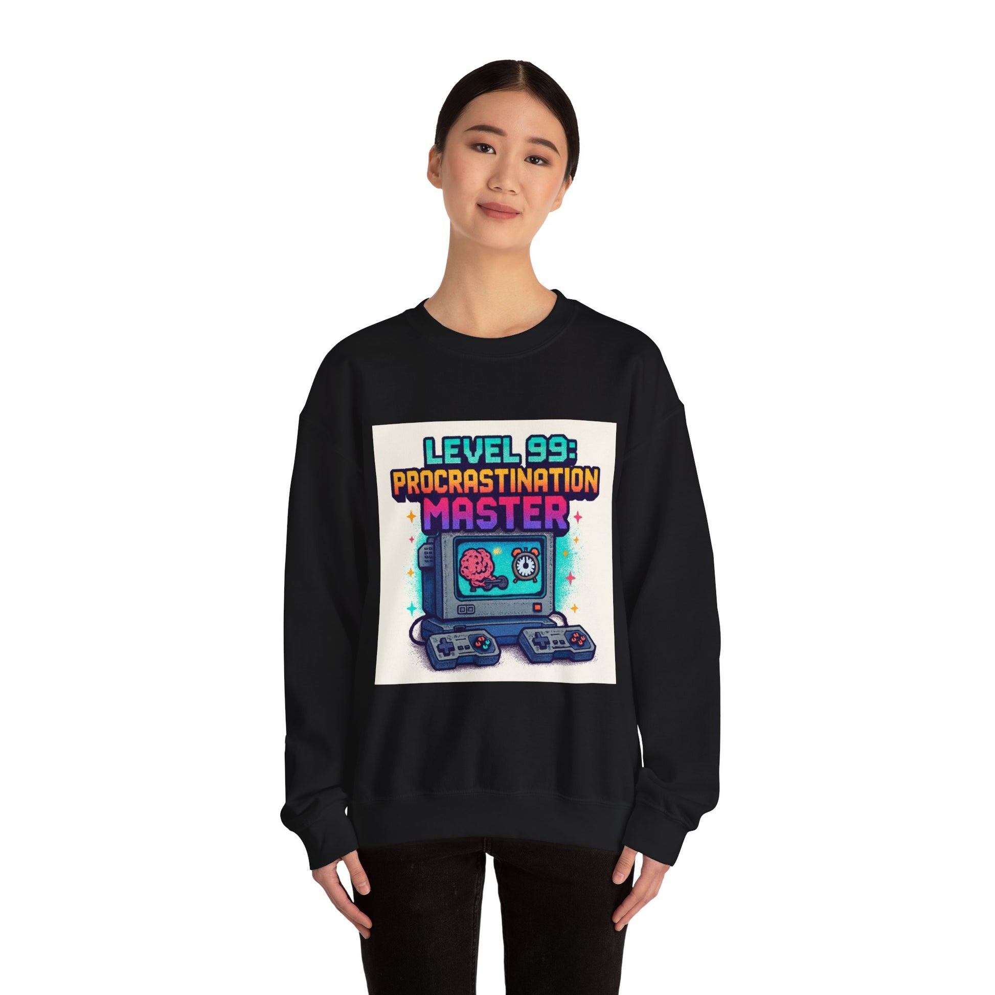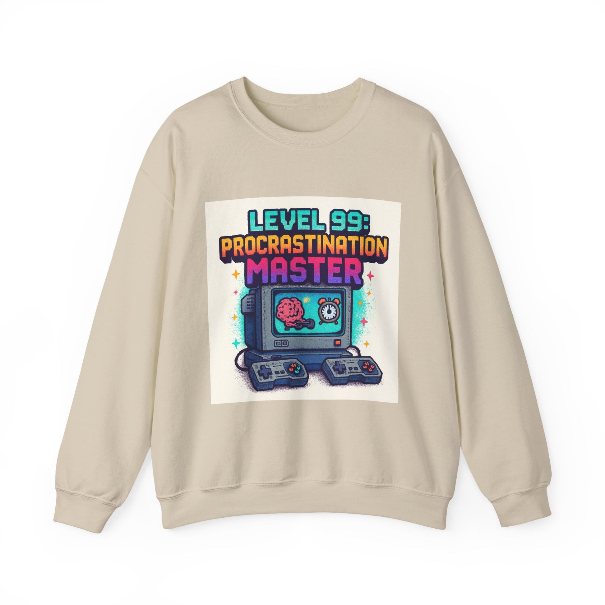 Crewneck Sweatshirt — "Level 99: Procrastination Master" Retro Gamer Graphic